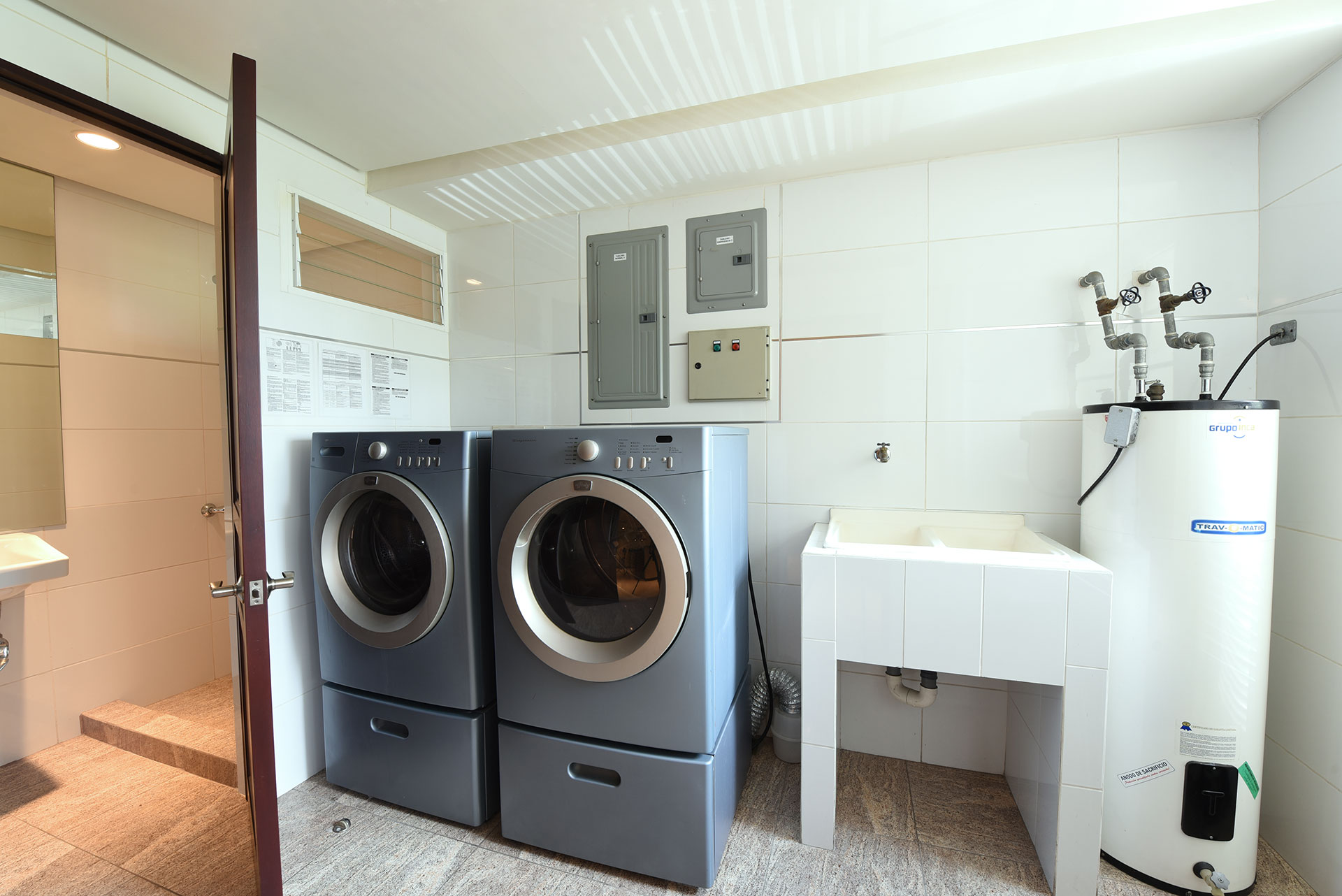 Gran Sala-comedor, cocina, y área de lavado con baño de servicio.